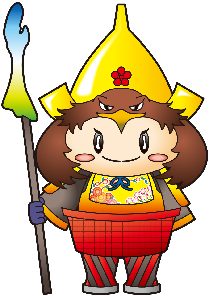 加賀百万石を築いた前田利家をテーマとしています。槍の名手であり、派手好きだったと言われているため、槍や兜に特徴を持たせました。槍は石川県の形をモチーフに、兜は前田利家のナマズの兜に、石川県の県鳥イヌワシをあしらいました。鎧の胸元には、伝統工芸品である加賀友禅の模様、足は鼓門をイメージしており、兜には前田家の家紋である梅鉢紋を入れました。