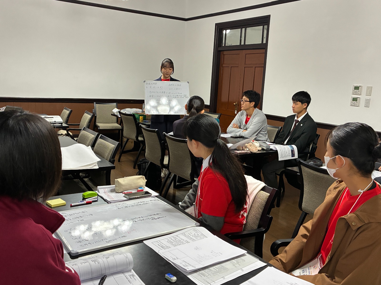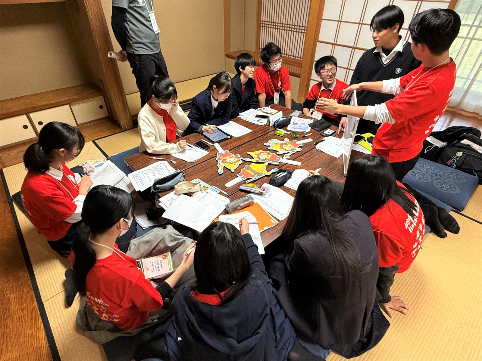 総務・パレード部会では、パレードコースの視察やおもてなし弁当の食材研究の結果報告を行い、パレードのテーマについてグループで議論を深めました。総合開会式部会では、係ごとに企画内容を検討し、発表し合うことで内容の具体化を進めました。